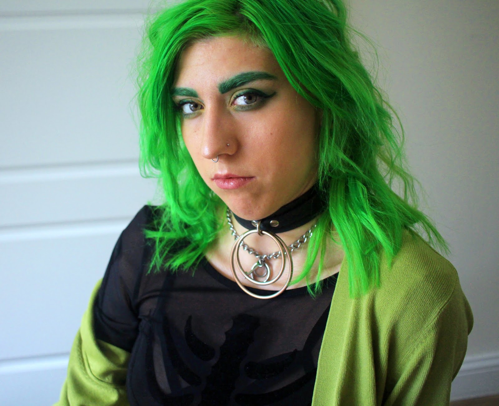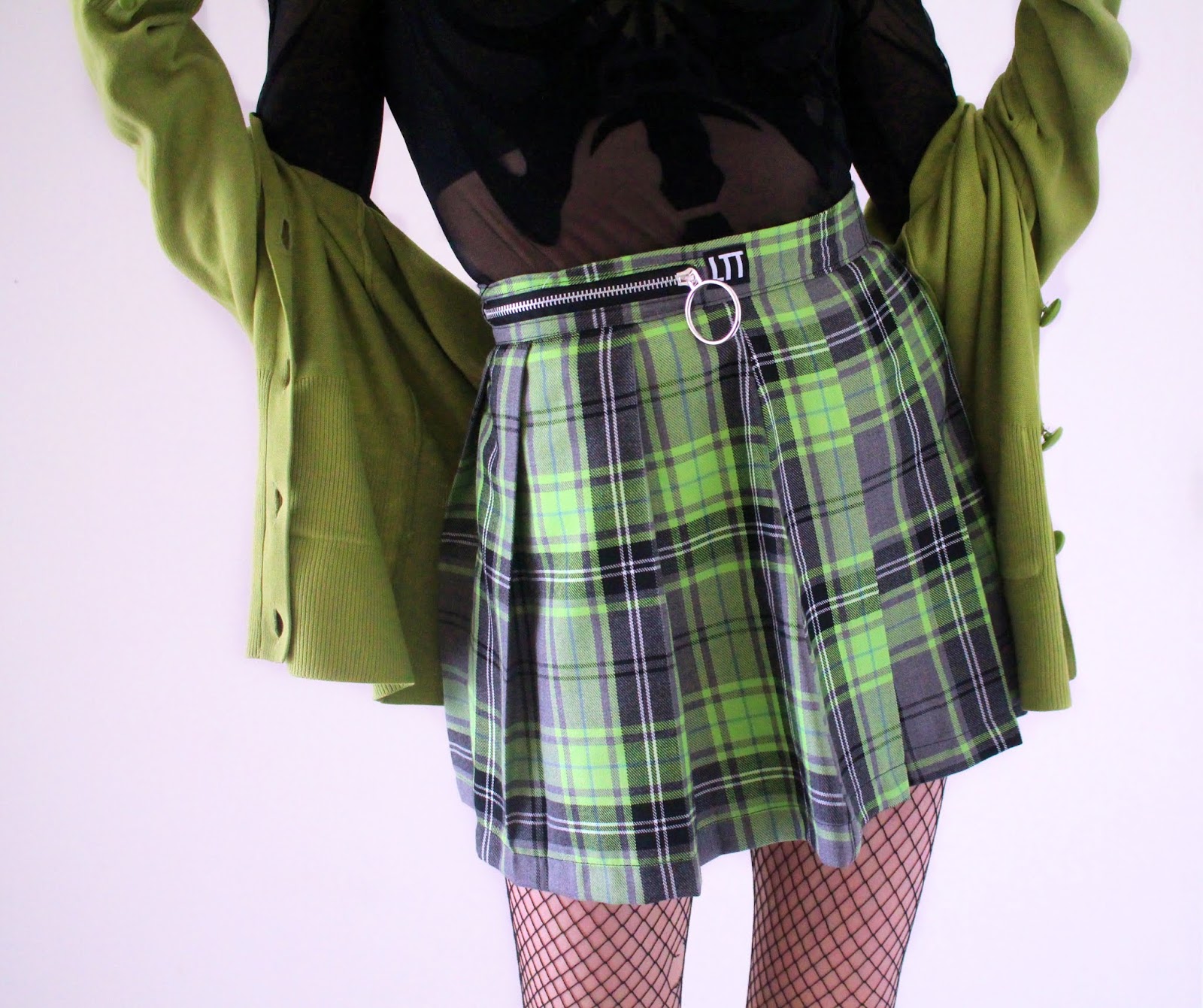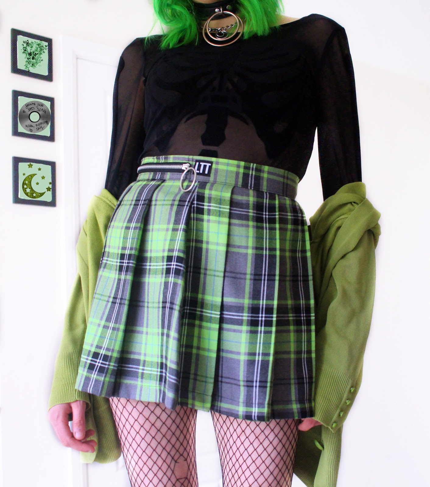 Bodysuit – H&M // Skirt – Love Too True // Cardigan – Thrifted // Tights – H&M // Beret – ASOS // Choker – Killstar // Shoes – Demonia